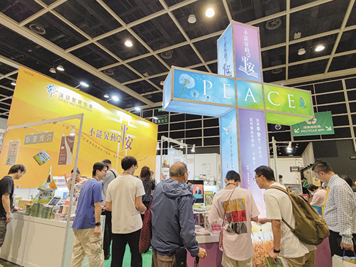 本年度香港書展於7月16至22日,在香港會議展覽中心舉行。當中雖因颱風韋帕影響開放時間,卻正好呼應今年的主題「不能晃動的平安」。縱然會場外風雨飄搖,展板下人們依舊靜靜翻看書籍。看來天氣雖減少了入場人次,但也擋不住信徒渴慕上主話語的心。