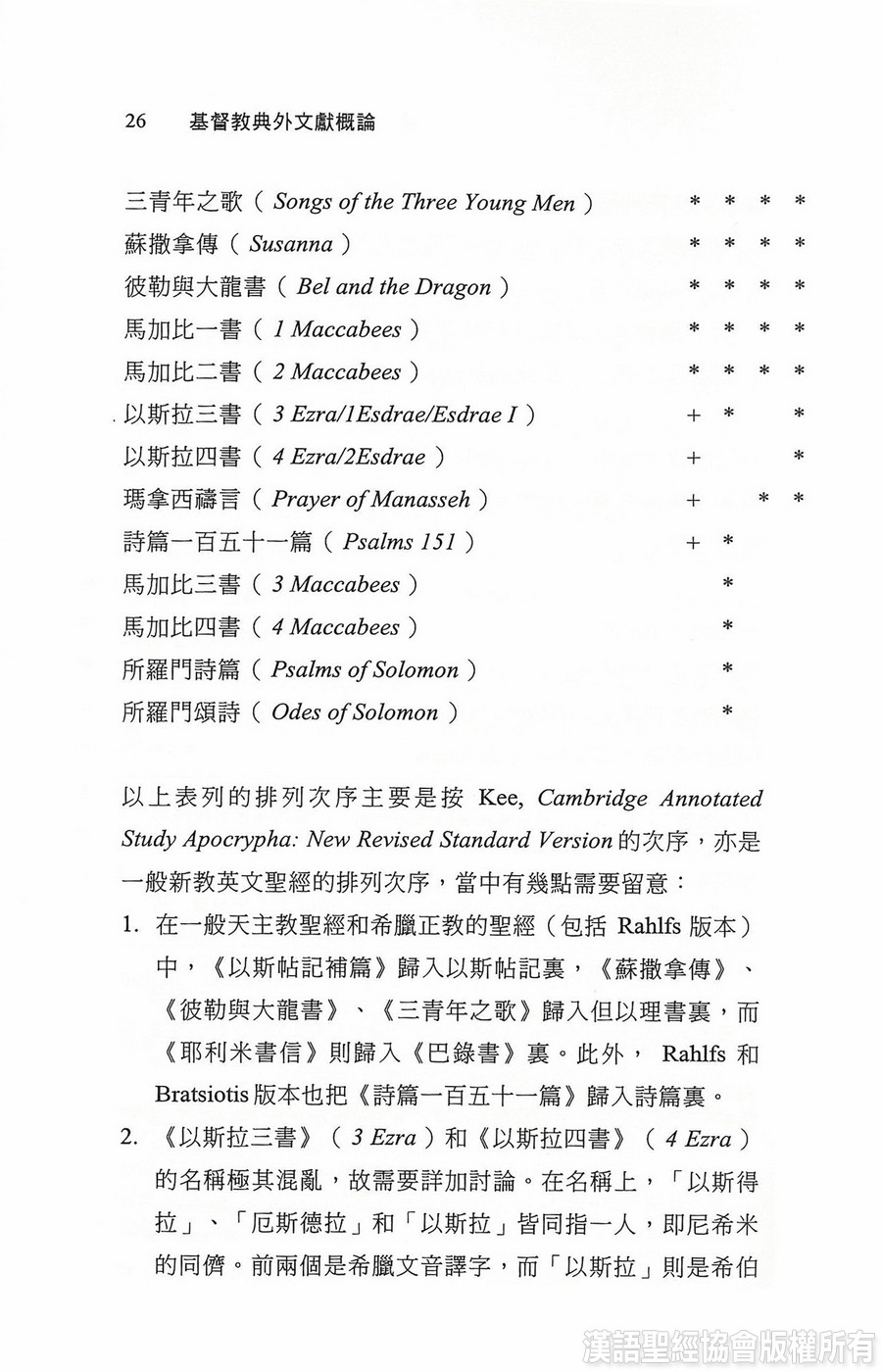 本書除介紹聖經正典以外文獻,亦探討這些文獻與正典文獻的關係,包括所有舊約次經和偽經,以及新約次經的書卷,當中涉及的書卷約200卷。典外文獻所隱藏的寶貴資料是不可低估的,本書的目的就是要讓華人信徒正確認識這寶庫。